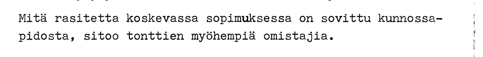 “Mitä rasitetta koskevassa sopimuksessa on sovittu kunnossapidosta, sitoo tonttien myöhempiä omistajia.”